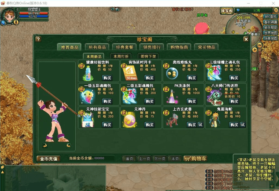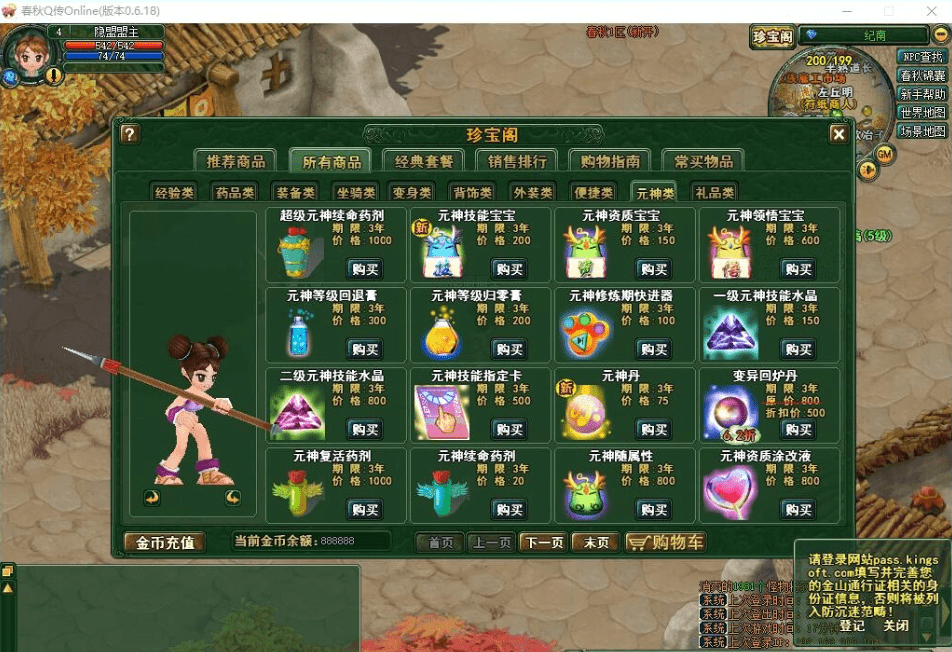 《春秋Q传》商城添加所有职业元神技能书升级活动奖励牌+虚拟机+充值修改
