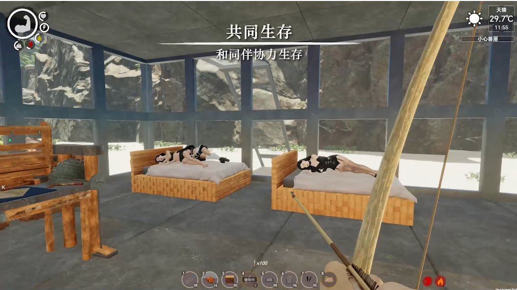3.智能NPC,可以独自完成进食,烹饪,休息,采集,战斗等工作,还可以根据玩家状态调整自身行为并对玩家进行各种关心和感情交流。