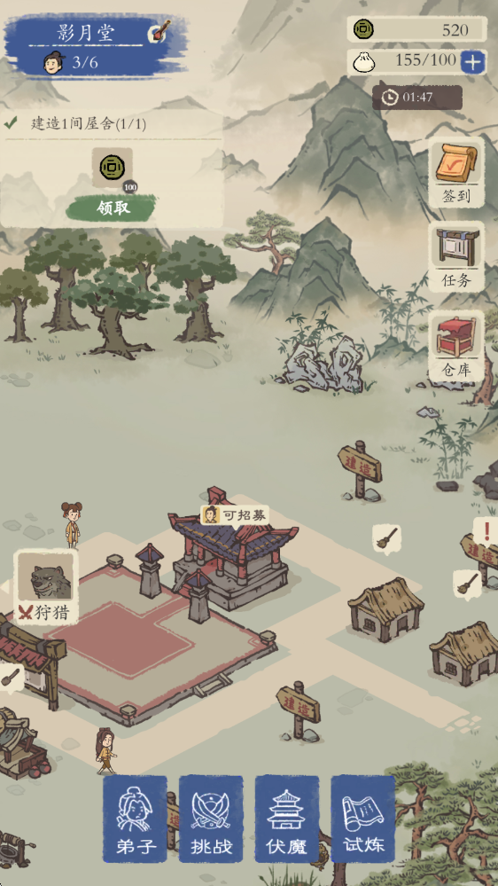 所有要观看的视频都可以跳过,挺休闲的一个游戏,打造宗门,招募弟子,经营门派