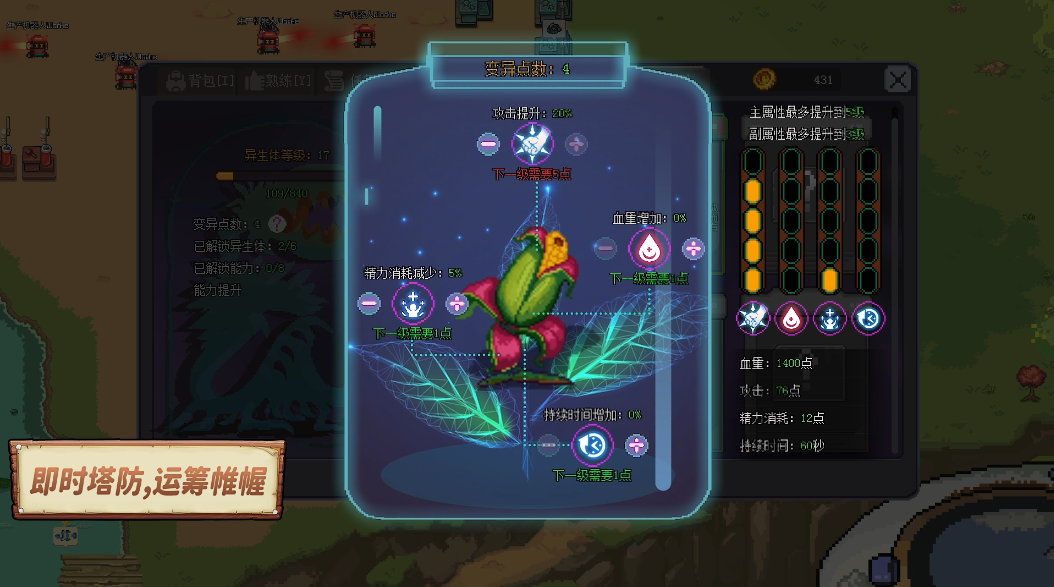 游戏还包含策略性的即时塔防玩法,数种功能各异的防御塔可以随身携带,利用丛林、戈壁、峡谷、迷宫等地貌,随时布置防线,击败潜伏在小岛中的异生体,来一场酣畅淋漓的战斗!