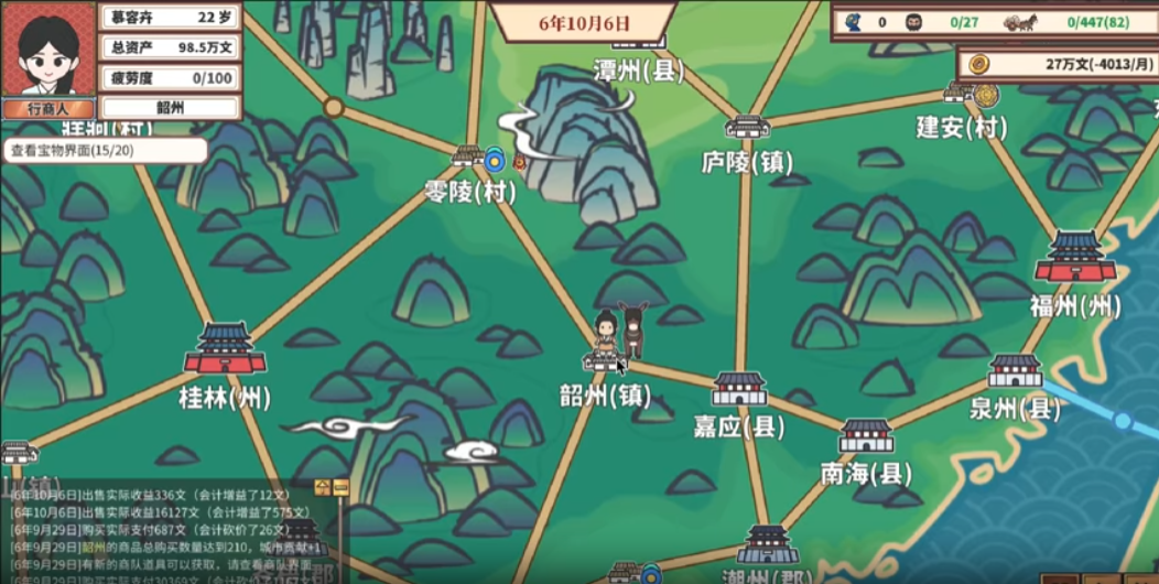 每年的资产变化、每年的收支、买卖最多的商品、去过最多的地方,都会记录在游戏中的数据系统,数据记录着你一路走来的艰辛与成就。当你铸就自己的贸易帝国时,回头看这些真实记录时,想必会别有一番感慨吧!