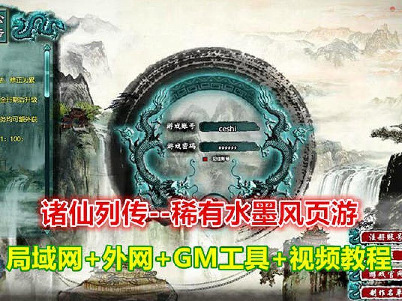 稀有水墨风页游诸仙列传完整端,局域网,外网+带GM工具